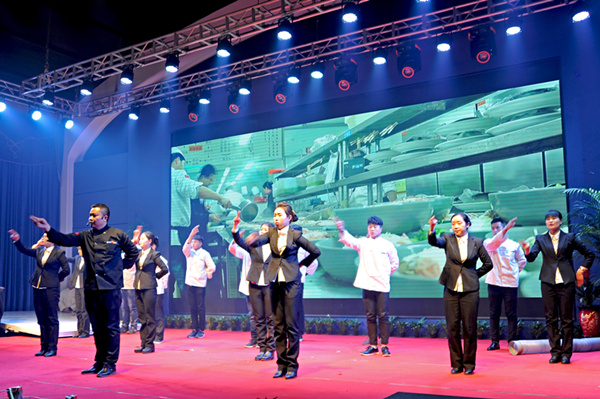 迪尼斯酒店開元店表演的團(tuán)隊(duì)風(fēng)采《眾志成城·從頭再來》是公司員工紀(jì)律、業(yè)務(wù)、才藝、禮儀與團(tuán)隊(duì)精神的綜合展示,獲得二等獎,獎勵2000元;